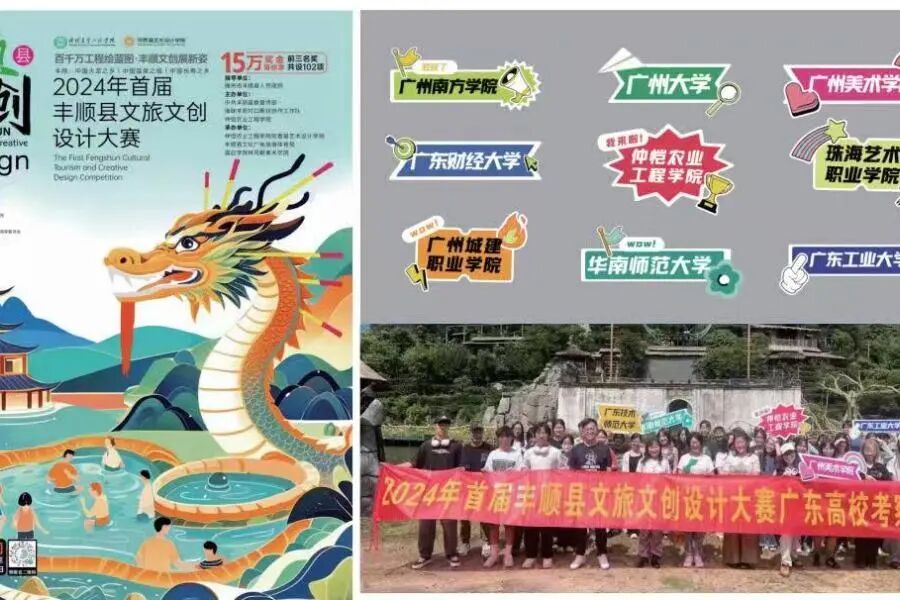 学校主动搭建平台,联合丰顺县政府举办首届文旅文创设计大赛,组织省内及澳门地区13所高校130名师生深入丰顺开展实地考察,发动省内23所设计专业高校师生参赛投稿。比赛共贡献规划及文创作品450件,为丰顺文旅发展提供了丰富的创意储备,其中本校参赛作品荣获一等奖8项,二等奖22项。同时,学校组织师生参加省“粤美乡村”风貌设计大赛,共17支团队获奖,其中获二等奖3项、三等奖8项。此外,团队完成的《丰顺县丰达路至丰顺体育馆路段道路景观节点设计》《智产聚力·佛冈绿廊——佛冈城西科技园纵一路(一期)环境景观提升优化设计》两项规划设计成果均入选“粤美县城”特色风貌建设成效和县城城市设计作品成果交流展,为打造县域重要干线景观节点提供了示范样板。