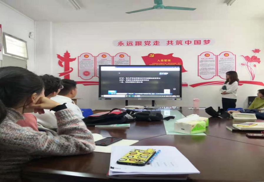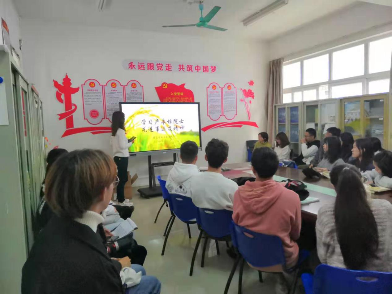 党员蔡东雯为我们介绍了卢永根院士的先进事迹。随后党员李艳兰和党员魏尚霖发表自己对卢永根这位“布衣院士”的学习心得。