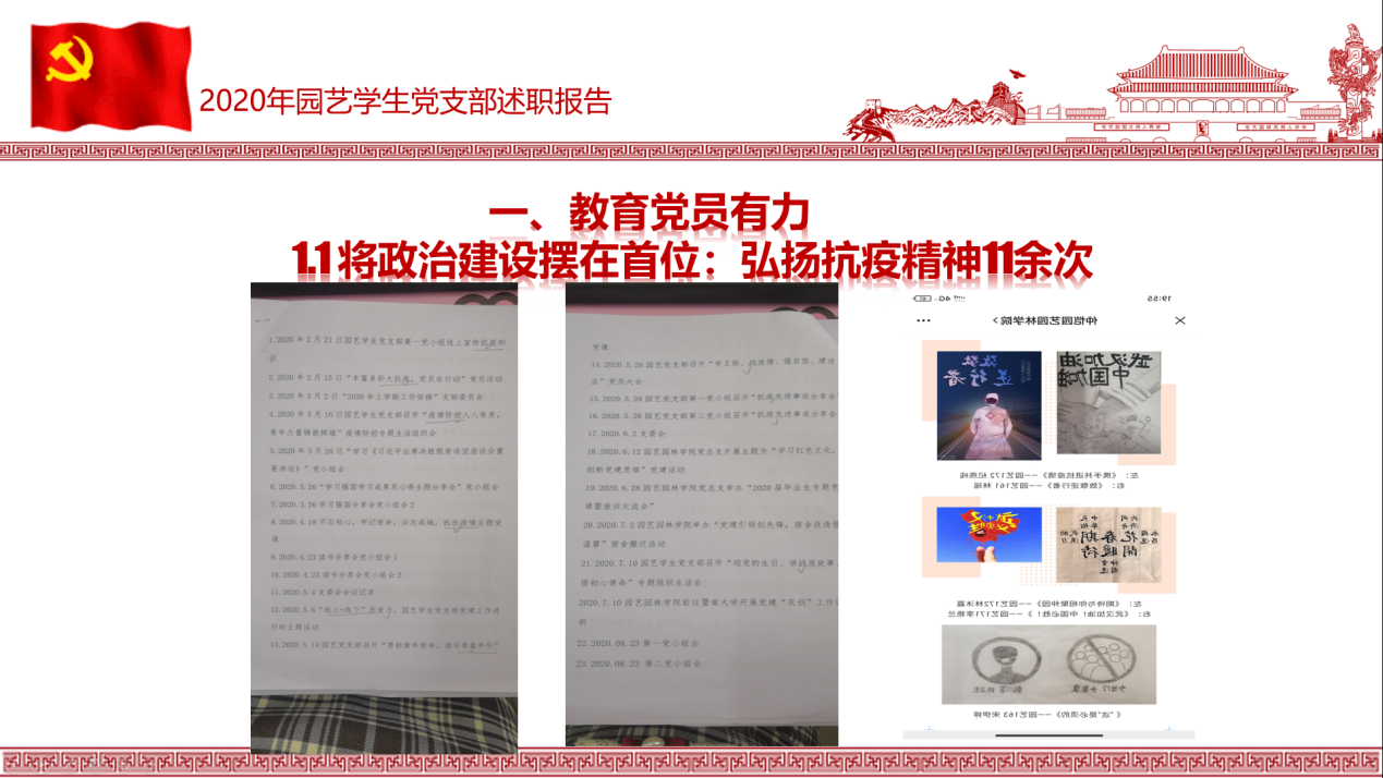 本学期主要负责的是:发展对象及预备党员发展的相关事宜,其次是党支部年度述职报告材料收集整理、PPT制作、收集党员党费、党务系统操作、组织开展党小组会议以及相关党课的学习等。