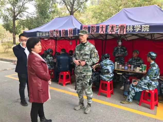 1月20日,园艺园林学院党总支书记陈晓玲、党总支副书记石利刚以及20级班主任代表代文魁老师亲切慰问20级军训同学。
