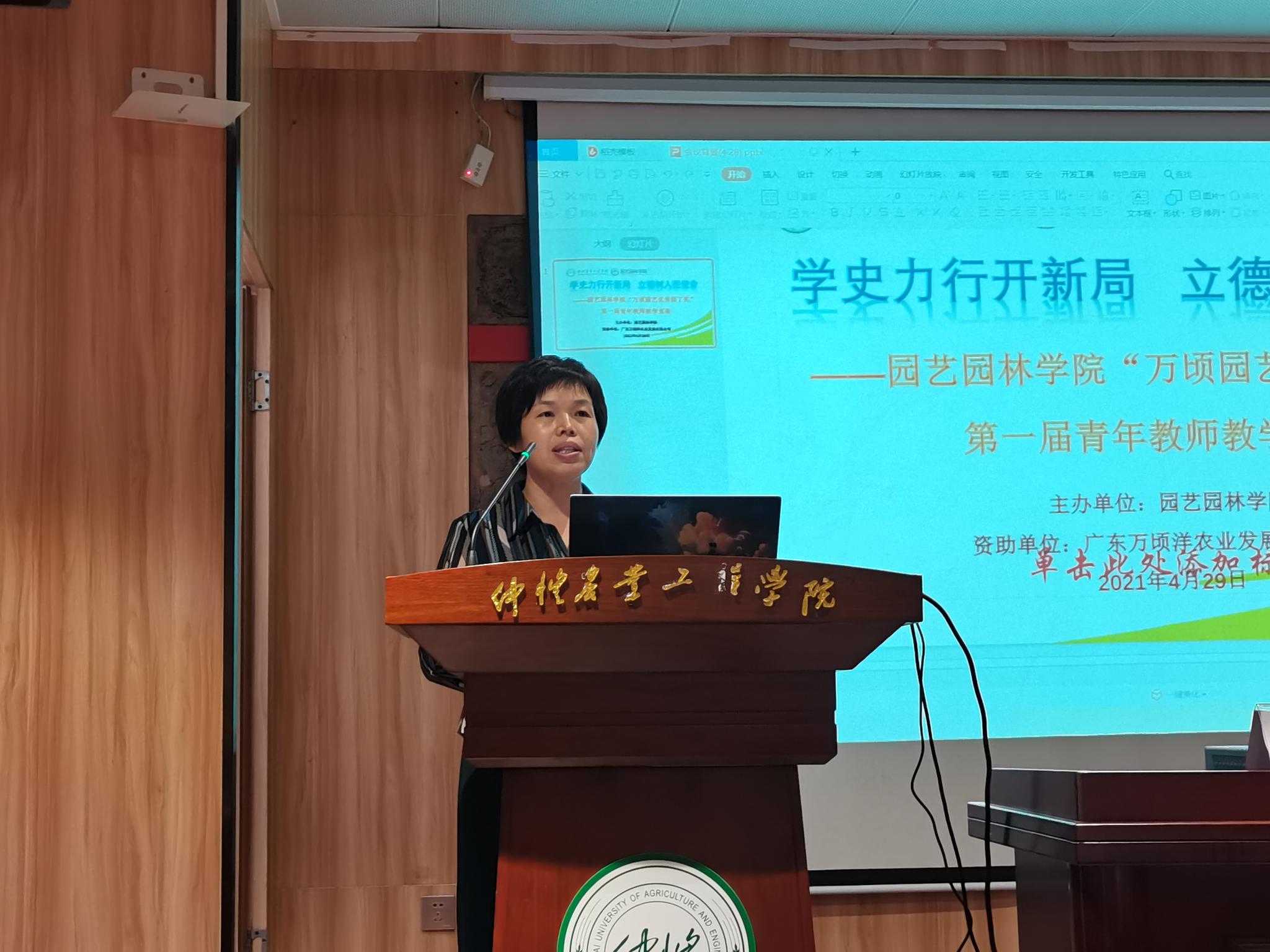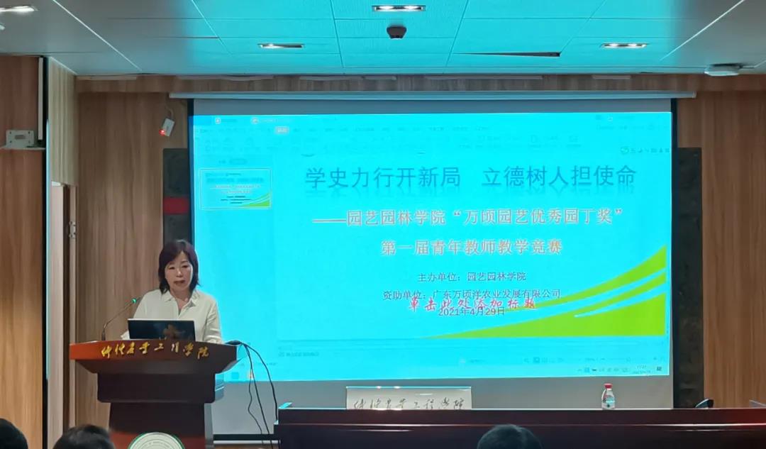 为深入开展党史学习教育,提升青年教师课堂教学能力和水平,开创立德树人新局面,4月29日下午,园艺园林学院在海珠校区英东楼111室举办“万顷园艺优秀园丁奖”第一届青年教师教学竞赛。本次教学竞赛由梁雪莲、颜琳、黄建昌、冯颖竹、刘袆帆等担任评委,广东万顷洋农业发展有限公司资助,园艺园林学院全体教师参加观摩教学比赛。大赛由学院教学副院长郭春华主持。